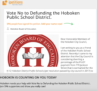 A petition using the official seal of the Hoboken Board of Education, is circulating on social media alleging that the Hoboken School District is in danger of being "defunded." Clearly trying to leverage recent turmoil around the country about "defunding the police" -- this effort is no less ill informed and trying to stoke and divide the community.